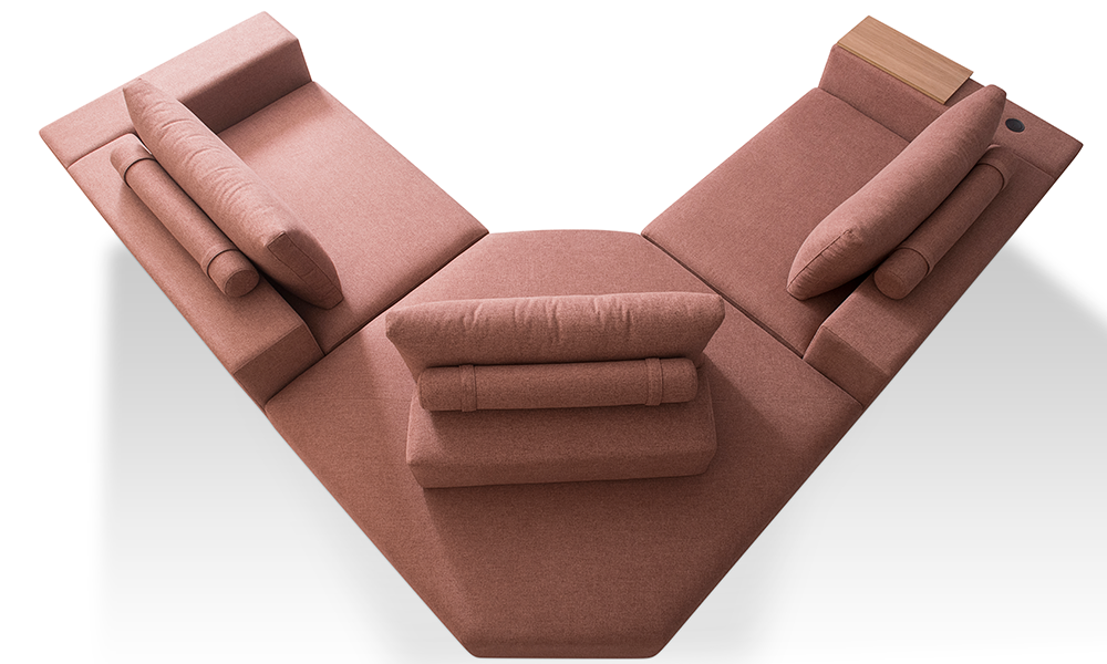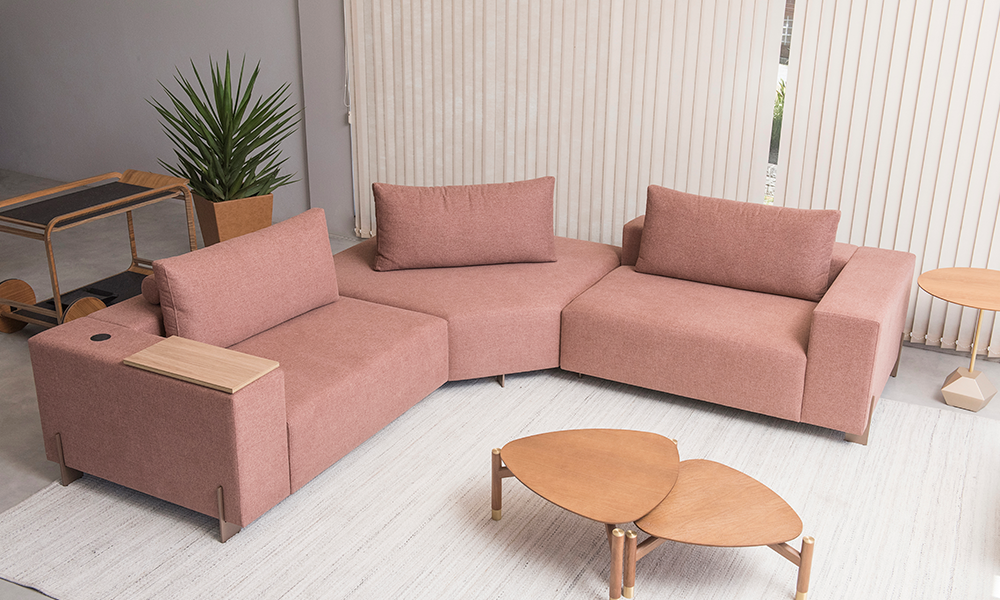 Formas geométricas bem definidas configuram o sofá Favo, um living charmoso e atemporal, passível de diversas combinações de layout. A falta de encosto fico do módulo independente da chaise traz também a possibilidade de criar arranjos frente e verso, deixando o sofá com um ar mais despojado e criativo.