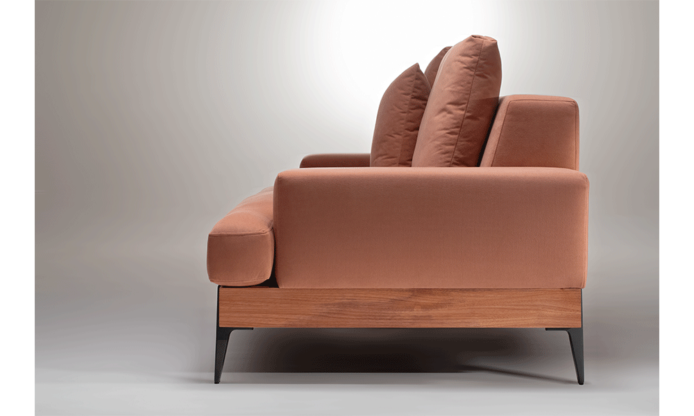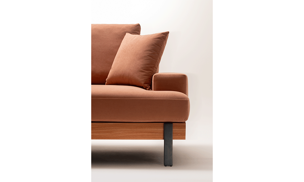- Sofá living com almofadas de encosto soltas;