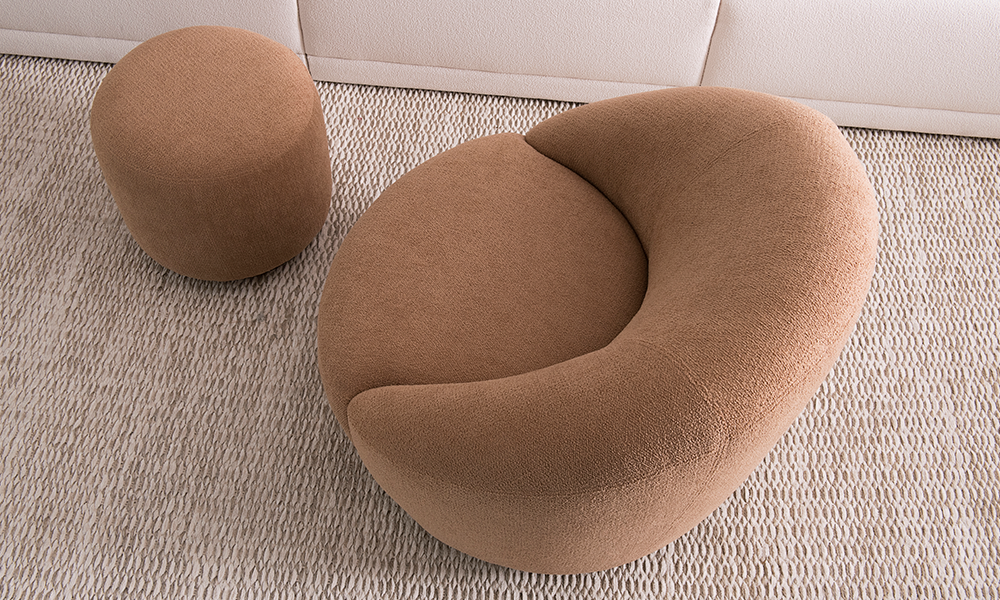 Os volumes sobrepostos e as linhas bem arredondadas da Poltrona Pérola, harmonizam com o encosto macio que a estrutura, envolvendo o corpo num abraço confortável.
