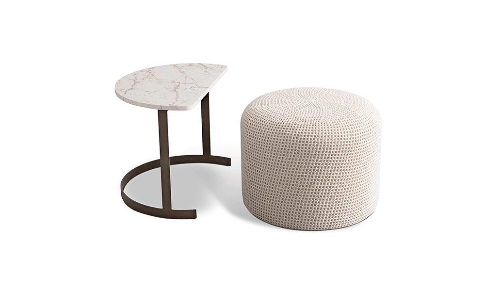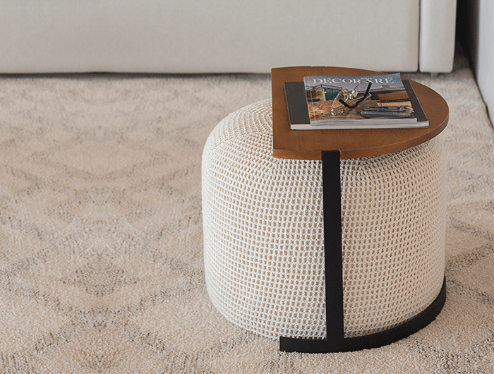 Puff com mesa de apoio complementar.