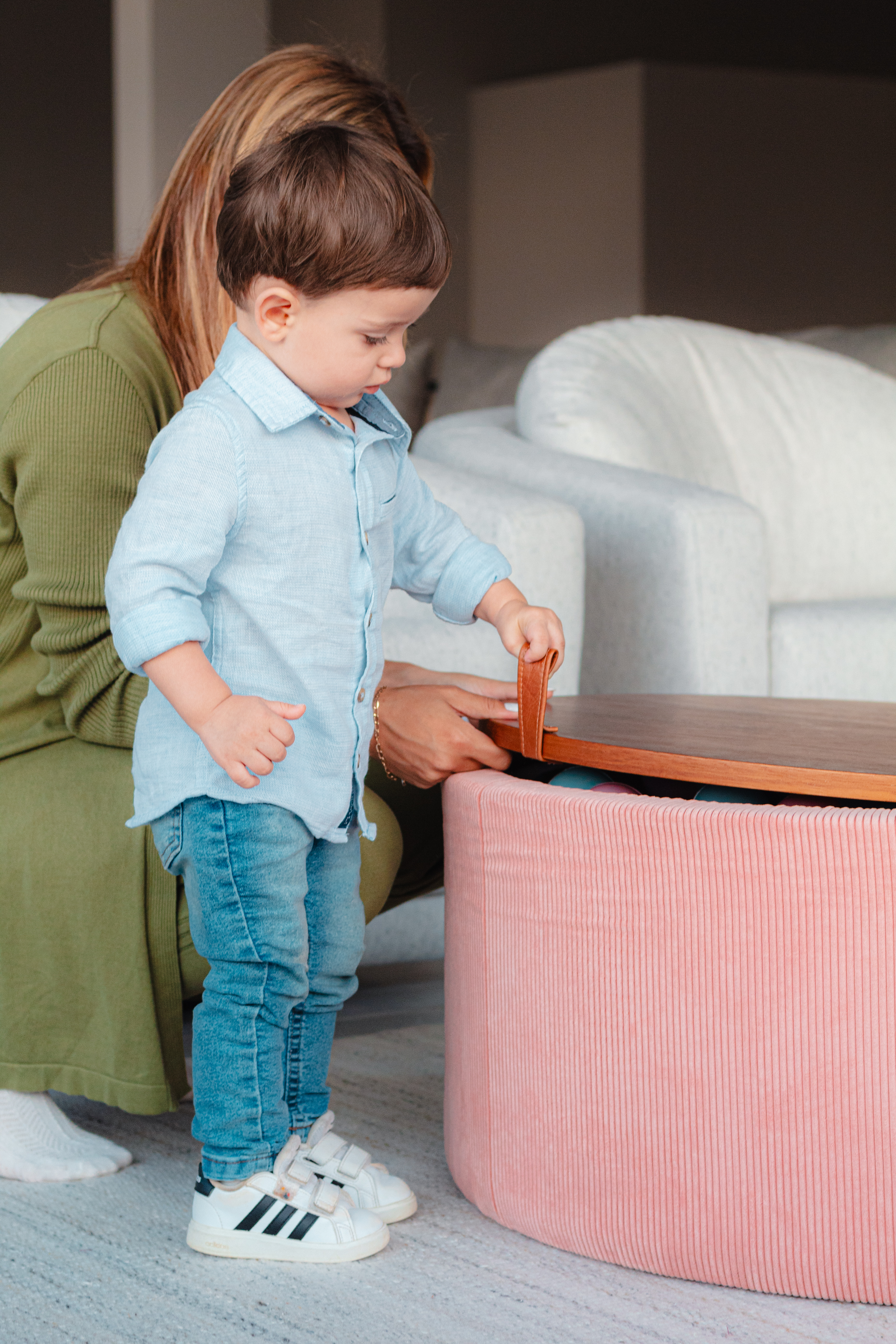 Além da praticidade de ser mesa, puff e baú ao mesmo tempo, o puff Save no tamanho G traz um novo propósito: divertir a criançada sem comprometer a sofisticação do ambiente.