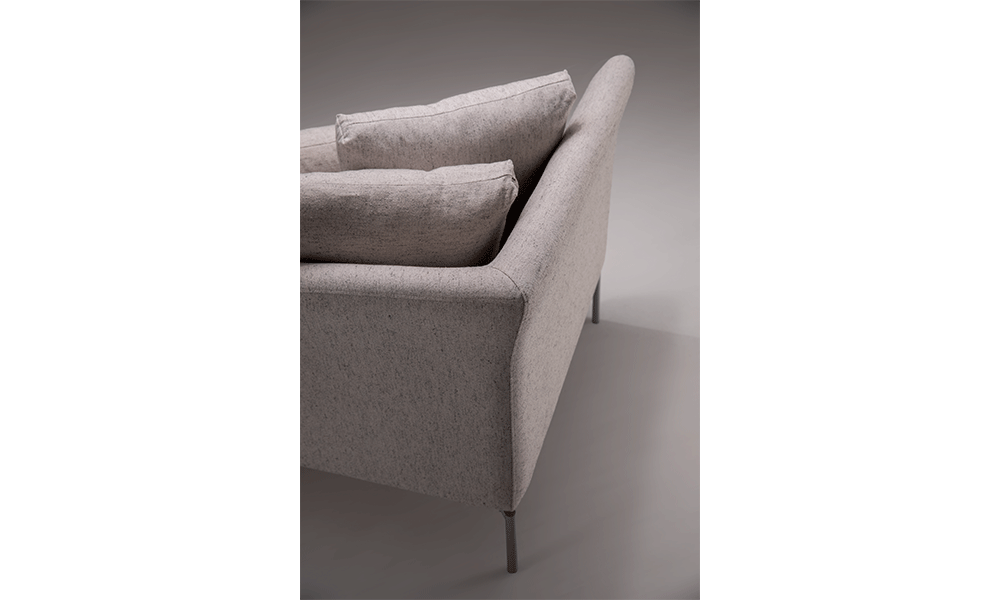 Possui pés em metal, com diferentes opções de cor e acabamento.