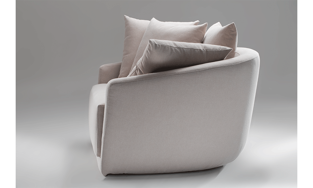Momentos de relaxamento ganham forma através de um assento generoso e encosto arredondado, complementado por almofadas com toque de pluma.