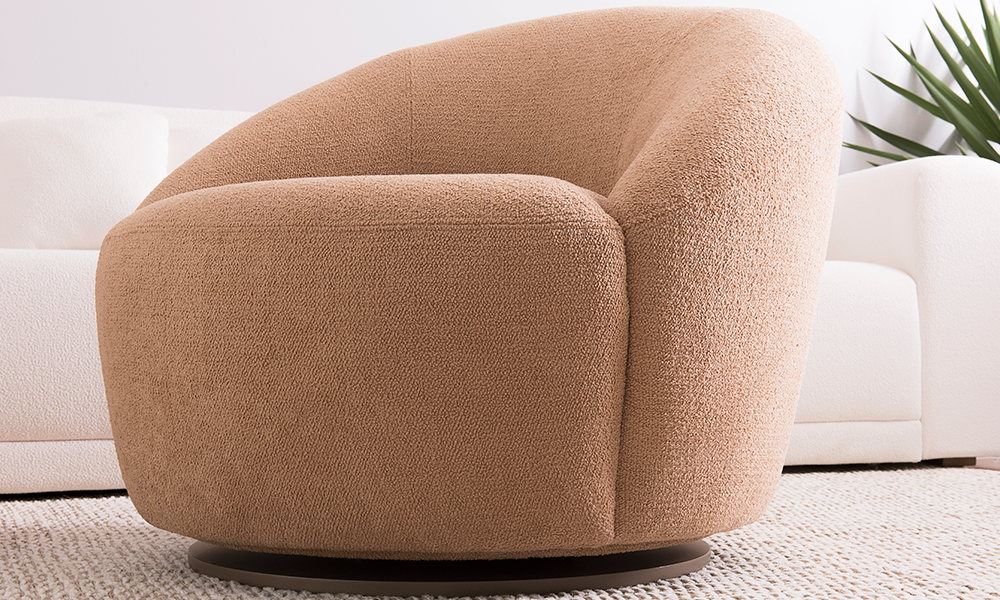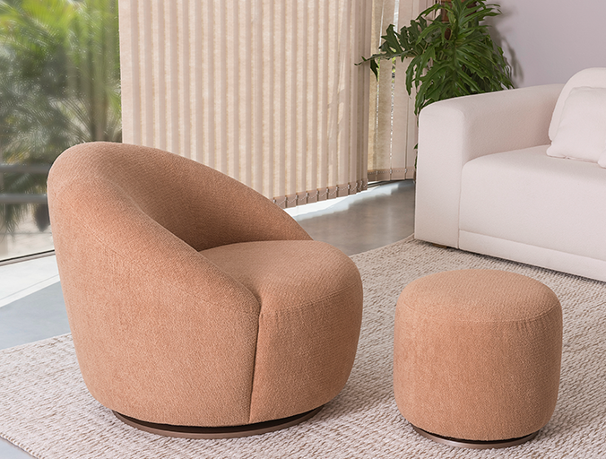 Os volumes sobrepostos e as linhas bem arredondadas da Poltrona Pérola, harmonizam com o encosto macio que a estrutura, envolvendo o corpo num abraço confortável.