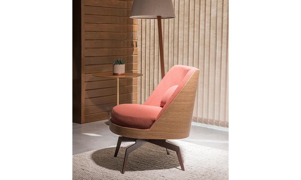Desenhada para adicionar um toque de sofisticação às salas mais compactas, Zephyr é uma poltrona giratória que traz elegância através das curvas, materiais e detalhes que a compõe.
