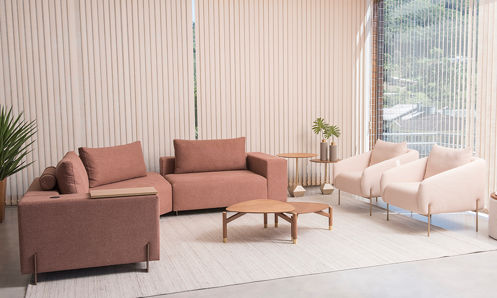 Formas geométricas bem definidas configuram o sofá Favo, um living charmoso e atemporal, passível de diversas combinações de layout. A falta de encosto fico do módulo independente da chaise traz também a possibilidade de criar arranjos frente e verso, deixando o sofá com um ar mais despojado e criativo.