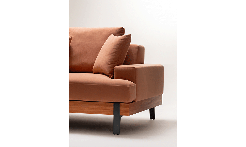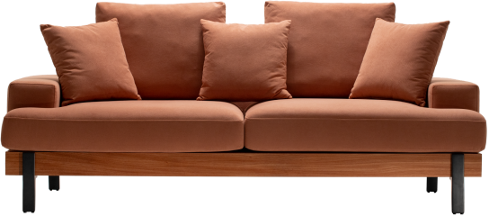 - Sofá living com almofadas de encosto soltas;
