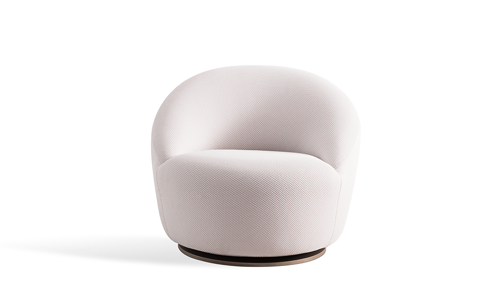 Os volumes sobrepostos e as linhas bem arredondadas da Poltrona Pérola, harmonizam com o encosto macio que a estrutura, envolvendo o corpo num abraço confortável.