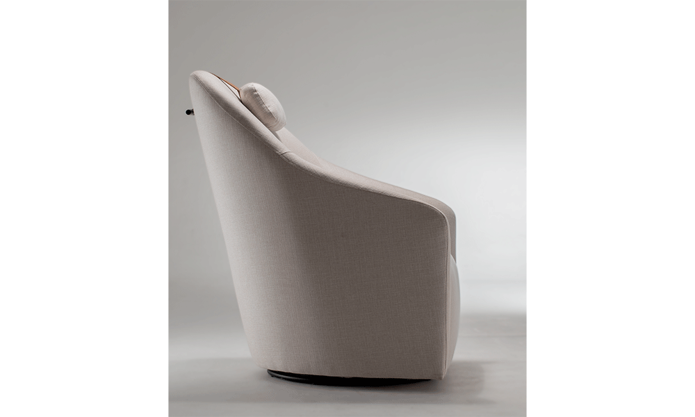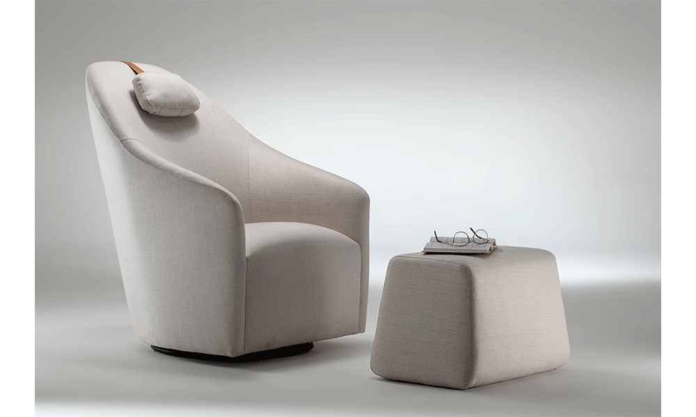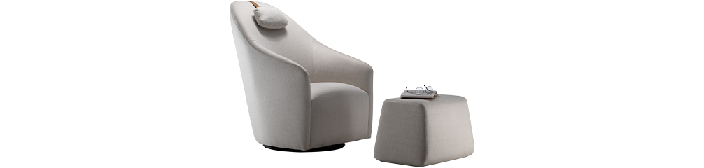 As curvas harmoniosas que dão forma às colinas são o ponto de partida para a criação da poltrona Hill, que sutilmente “abraça” a quem estiver sentado. O espaldar alto e a base giratória garantem os momentos de lazer e sossego.