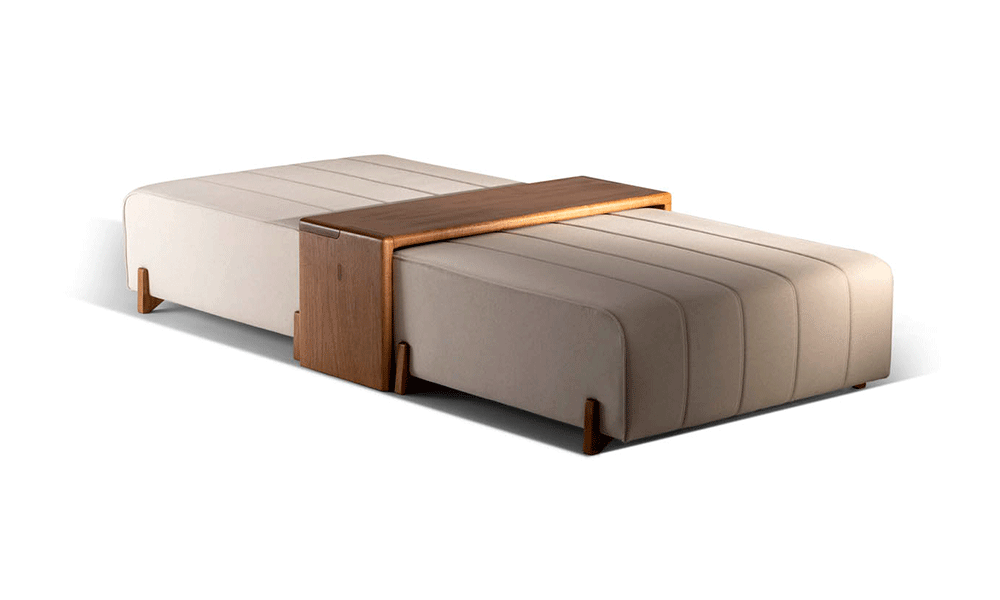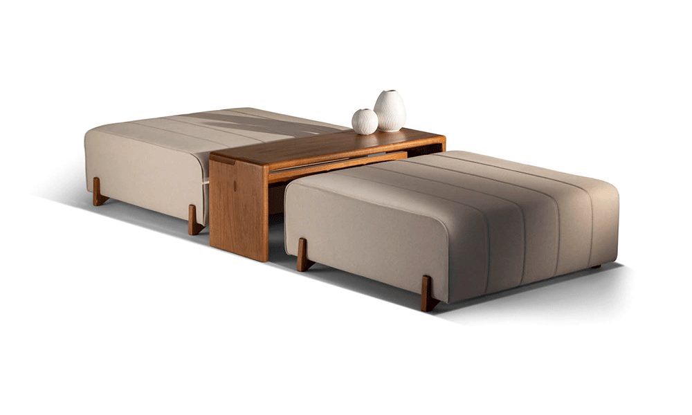 Linhas simples e elegantes formam o puff Fat, uma peça que revela a união entre versatilidade e design. Os detalhes de encaixe da madeira, assim como o trabalho das costuras, enriquecem ainda mais o produto.