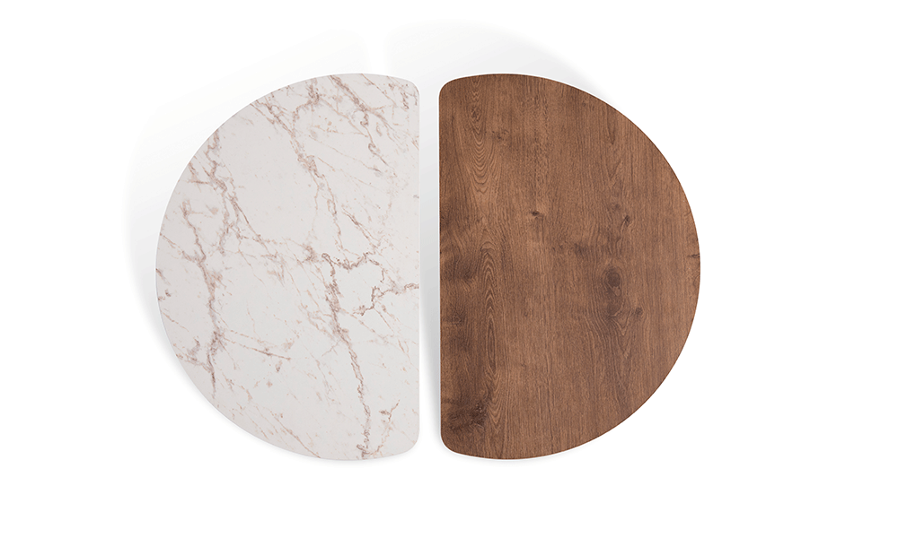 Diferentes opções de cor e acabamento, tanto para o metal, quanto para a madeira.