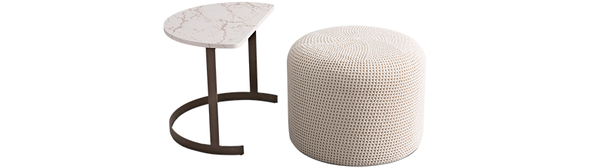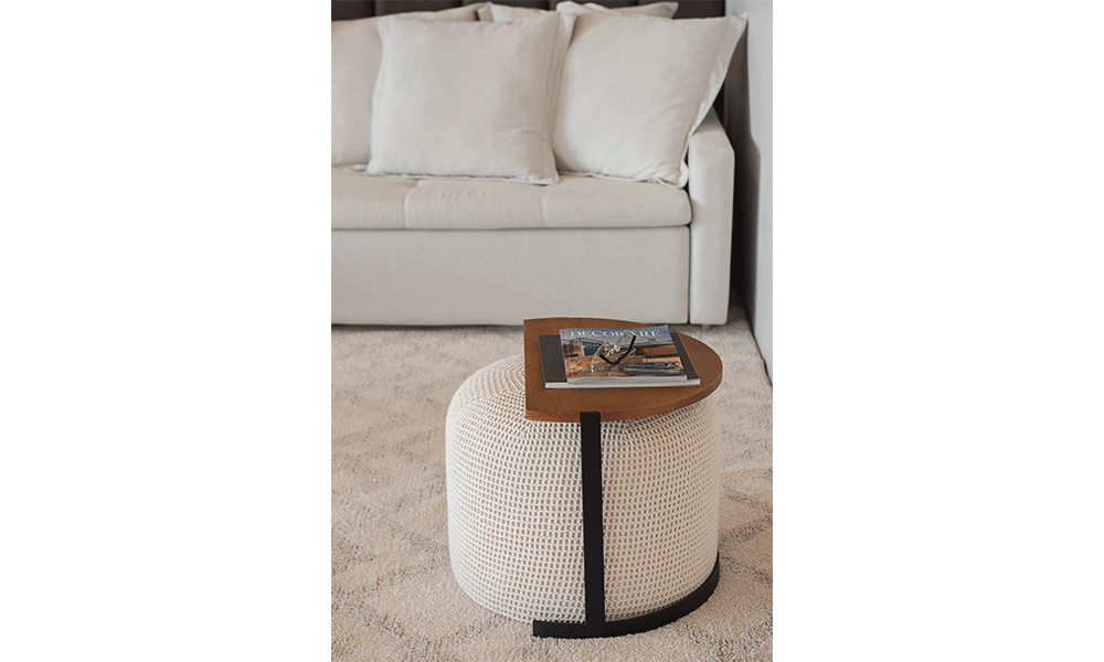 Puff com mesa de apoio complementar.